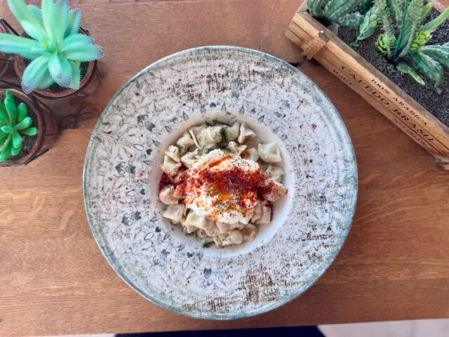 Yoğurt ve tereyağı sos ile. (sarımsak isteğe göre)