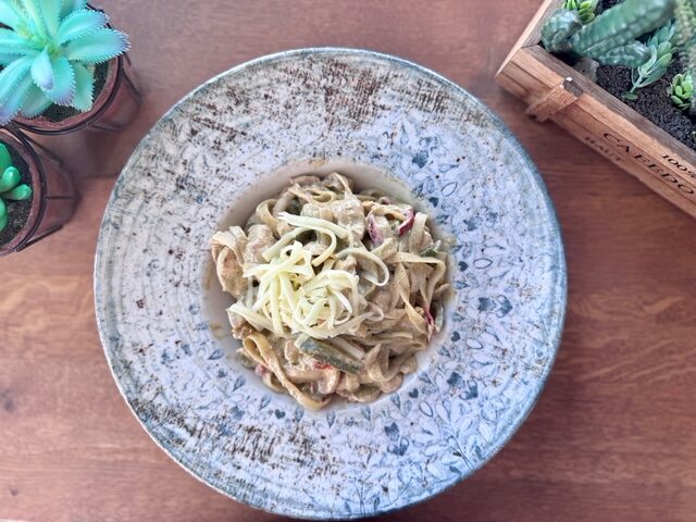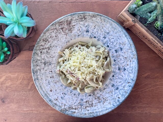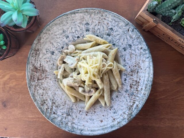 Makarna, krema ve 3 çeşit italyan peynirinin (parmesan,cheddar,mozzarella) uyumu…